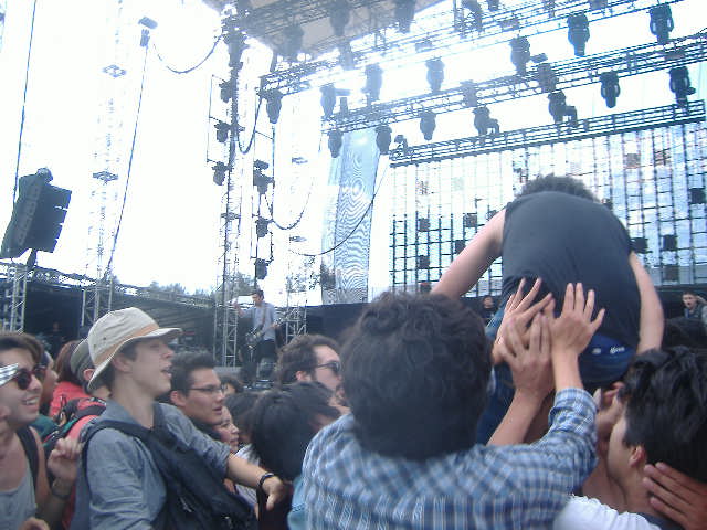 Luego de las tradicionales cervezas que muchos optamos por tomar antes de un festival de este tipo , emprendimos la larga caminata de acceso al autódromo hermanos Rodríguez que ya tenia en acción a un trió bastante agradable de nombre The Big Pink provenientes de Londres quienes a pesara de sus ritmos bailables no llegaron a conquistarme a excepción de la belleza de sus dos integrantes femeninas quienes impresionaron a mas de uno.