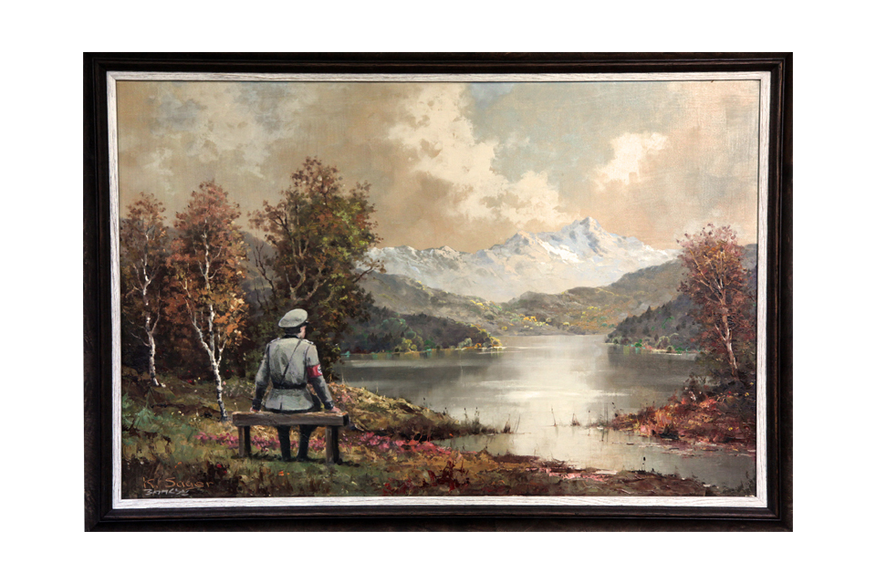 Después de comprar esta pintura de oleo en Housing Works Thrift Shop 157 E de la calle 23, el artista regresa la pintura ya como antigua, pero regresa modificada por Banksy, agregándole a ese hermoso paisaje un soldado Nazi, en la parte superior izquierda se puede observar la firma del artista original K. Sager y abajo la firma del artista ingles.